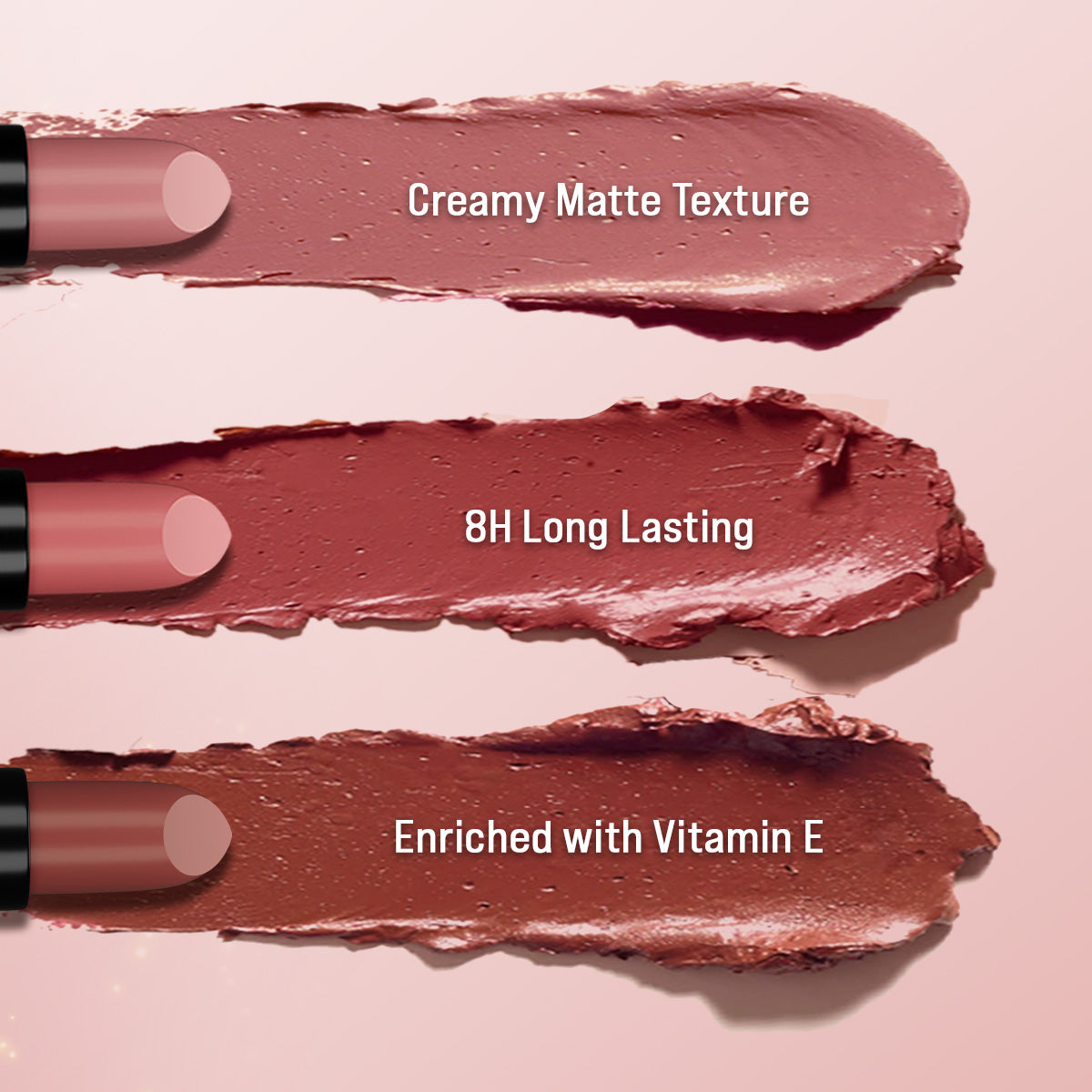 Introducing the Staze 9to9 Moments of Love - Creamy Matte Lipstick Gift Set featuring three handpicked creamy matte lipsticks in brown-girl-friendly nude shades designed to flatter every mood, move, and moment. The rich, velvety formula glides effortlessly, delivering bold color with featherlight comfort that lasts all day. Infused with Vitamin E care, each swipe keeps your lips soft, nourished, and kiss-ready. Perfect as a thoughtful gift for your mom, sister, bestie - or the ultimate treat for yourself.