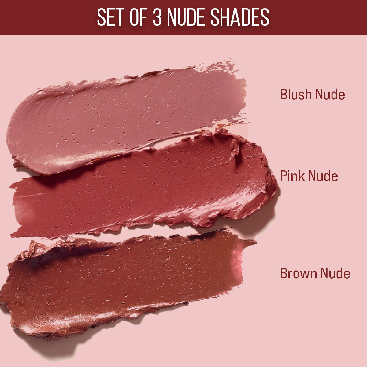 Keep your pout poppin’ in every mood with 3 universally flattering nude shades (Pink, Nude & Brown) made to celebrate every pout, mood, and vibe.