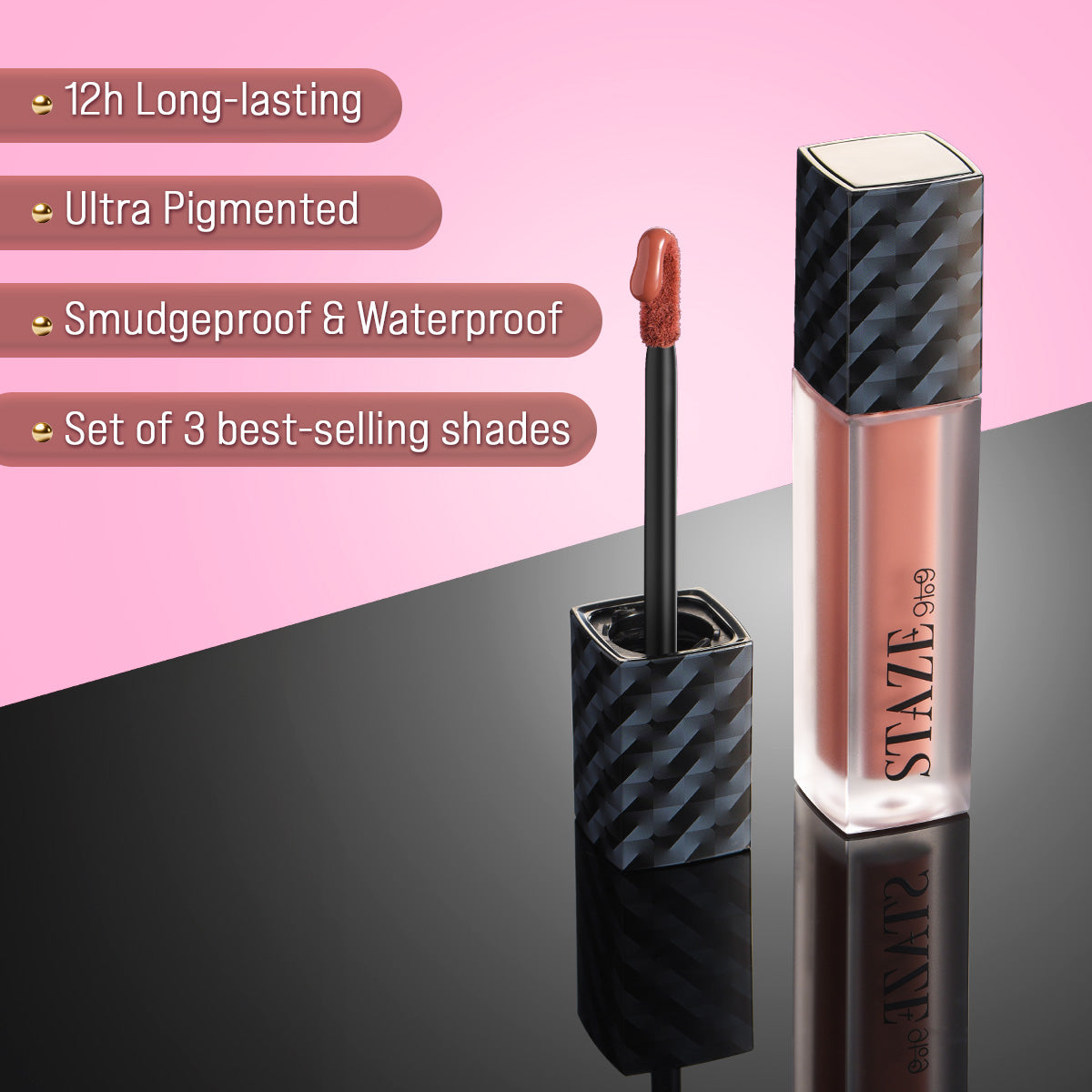 Why stop at one when you can gift three? Staze Moments of Love - Liquid Lipstick Gift Set brings you 3 brown-girl–friendly nude shades curated to complement every pout, mood, and moment. With a non-drying, ultra-matte formula that delivers intense color in just one swipe and stays put for 12 hours straight, these lipsticks are made to match your hustle (and your kisses). Infused with Vitamin E & Jojoba Oil, each shade keeps your lips nourished and comfortable — so you get the best of bold pigment and soft care. Whether you’re gifting your mom, sister, or bestie (or spoiling yourself), this set is love sealed in three iconic shades.
